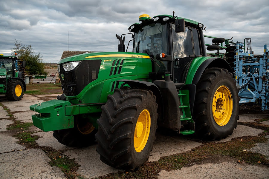 - Трактори: Потужні моделі John Deere серій 6B, 6R, 6M та гусеничні 8RT/8R.