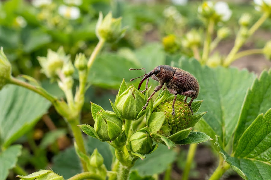 Боротьба з малинно-суничним довгоносиком — це гра на випередження. Якщо проґавити момент, цей малий жук може знищити до 60–80% врожаю, просто підгризаючи квітконоси, через що бутони засихають і відпадають.