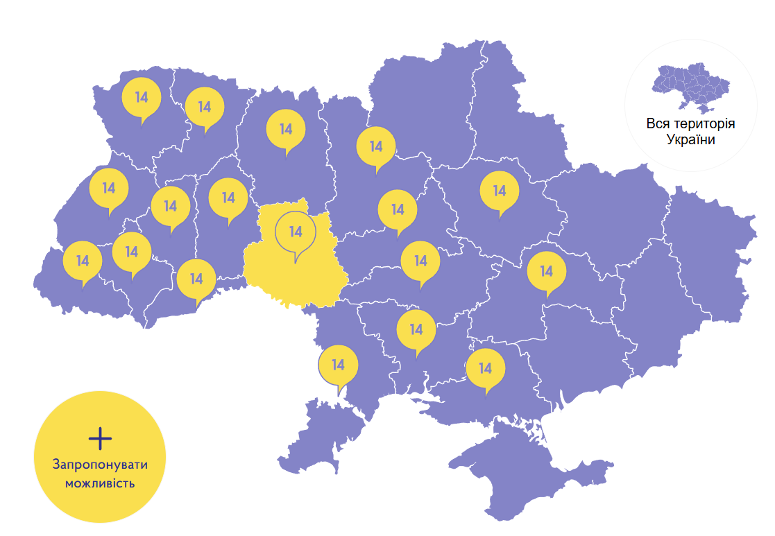 Система миттєво відобразить усі доступні ініціативи у вибраній області або запропонує загальнонаціональні онлайн-програми.